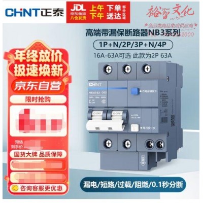 正泰(CHNT)断路器 空气开关带漏电保护开关 家用总闸空调2P 63A NB3LE-63 SKU:yzwhyp801629