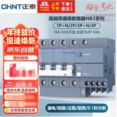正泰(CHNT)断路器 空气开关带漏电保护开关 4P家用总闸63A空调 NB3LE-63 SKU:yzwhyp801634