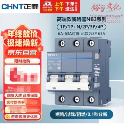 正泰(CHNT)空气开关 微型空开断路器 小型家用总闸泰极 NB3-63 3P 63A SKU:yzwhyp801643