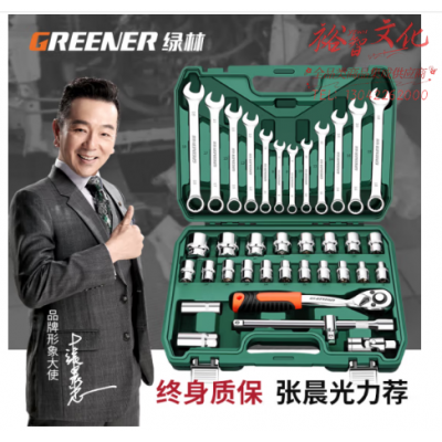 绿林(GREENER)专业汽修工具套装大飞棘轮套装梅花开口两用扳手全套37件 SKU:yzwhyp801713