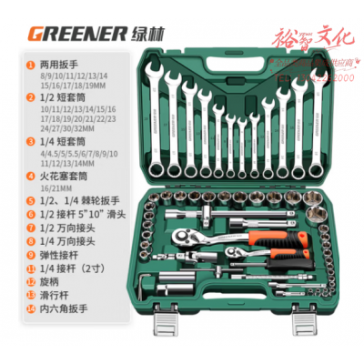 绿林(GREENER)专业汽修工具套装大小飞棘轮套装工具箱梅花开口两用扳手全套61件 SKU:yzwhyp801714