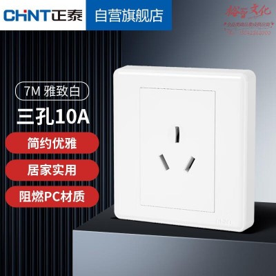 正泰(CHNT)开关插座墙壁面板家用86型面板一联三极插座三孔插座NEW7M白色10A 641623 SKU:yzwhyp801793
