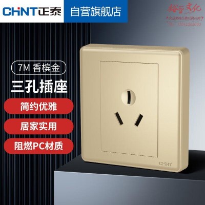 正泰(CHNT)开关插座墙壁面板家用86型面板一联三极插座三孔插座7M香槟色10A 1698 SKU:yzwhyp801817