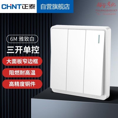 正泰(CHNT)86型墙壁面板家用暗装窄边框面板三开单控 6M白色256489 SKU:yzwhyp801822