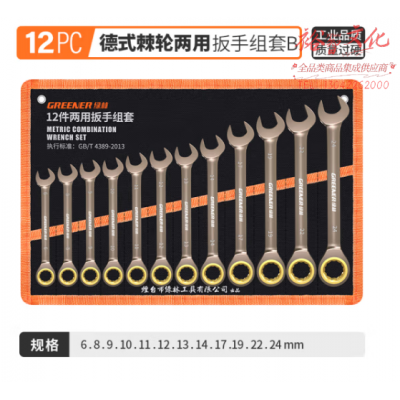 绿林(GREENER) 开口棘轮扳手套装 72齿快速棘轮梅开两用扳手工业级扳子汽修工具 棘轮开口两用12件套B【6-24mm】 SKU:yzwhyp801835