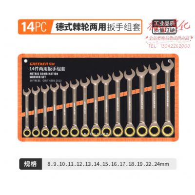 绿林(GREENER) 开口棘轮扳手套装 72齿快速棘轮梅开两用扳手工业级扳子汽修工具 棘轮开口两用14件套【8-24mm】 SKU:yzwhyp801836