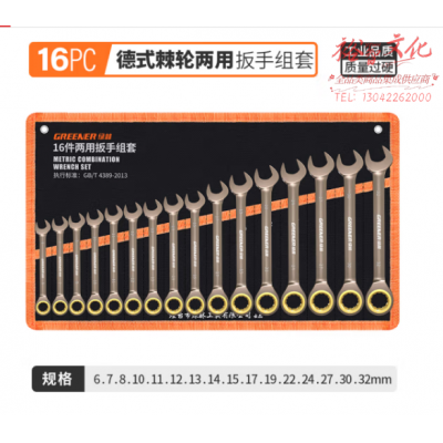 首页 > 建筑建材 > 手动工具 > 绿林(GREENER) 开口棘轮扳手套装 72齿快速棘轮梅开两用扳手工业级扳子汽修工具 棘轮开口两用16件套【6-32mm】 SKU:yzwhyp801837