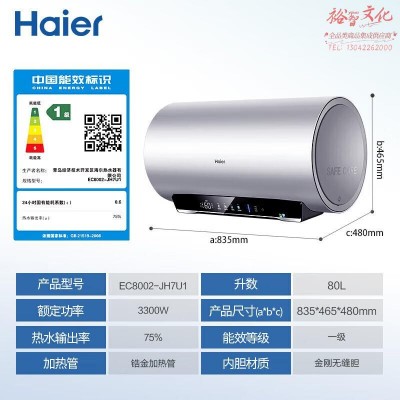 海尔(Haier)净水洗电热水器家用80升一级能效菲林屏3.3KW速热防电墙EC8002-JH7U1 SKU:yzwhyp801858
