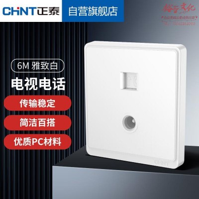 正泰(CHNT)开关插座86型墙壁面板家用暗装窄边框面板一联电视电话插座6M白色20684 SKU:yzwhyp801896