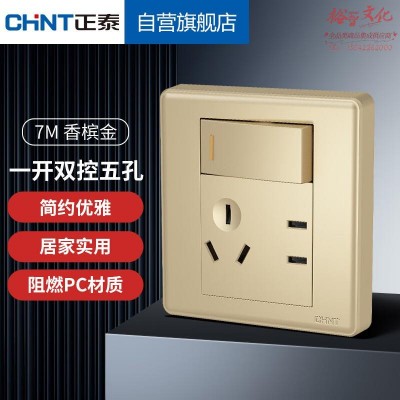 正泰(CHNT)墙壁86型面板 一联双控开关五孔插座7M香槟色16592 SKU:yzwhyp801902
