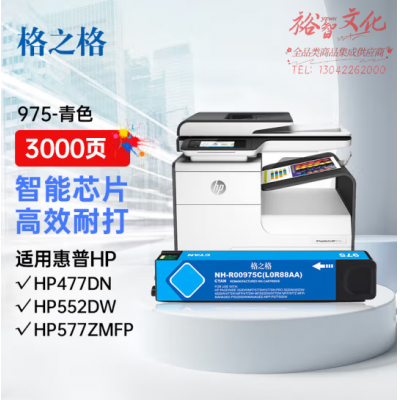 首页 > 办公用品 > 喷墨盒 > 格之格975A墨盒 R00975C 青色 约3000页 适用惠普577dw 577z 477dw 477dn 552dw 377dw P55250dw SKU:yzwhyp801931