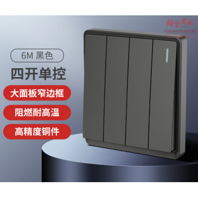 正泰(CHNT)86型墙壁面板 暗装窄边框面板四开单控 6M黑色162226 SKU:yzwhyp801978