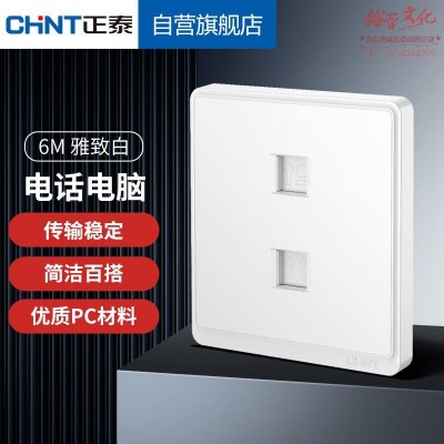 正泰(CHNT)86型墙壁暗装面板一联四芯电话插座 一联八芯数据插座6M白色 规格齐全26264 SKU:yzwhyp801982
