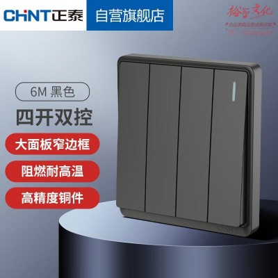 正泰(CHNT)开关插座86型墙壁面板家用暗装窄边框面板四开双控 NEW6M黑色164998 SKU:yzwhyp801983