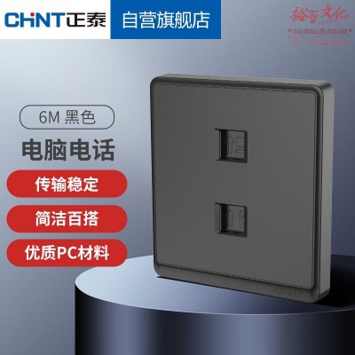 正泰(CHNT)开关86型 墙壁暗装面板 一联四芯电话插座 一联八芯数据插座6M黑色26589 SKU:yzwhyp801996