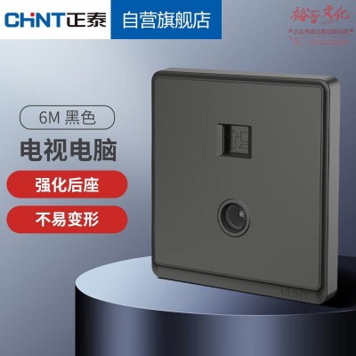 正泰(CHNT)开关插座86型墙壁面板 一联电视 终端数据插座 6M黑色25648 SKU:yzwhyp801998