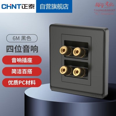 正泰(CHNT)暗装面板四位音响插座6M黑色16529 SKU:yzwhyp802004
