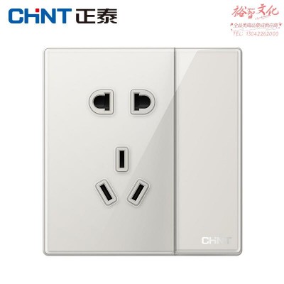 正泰(CHNT)86型无边框玻璃大面板一开双控加五孔插座皓月灰16494 SKU:yzwhyp802017