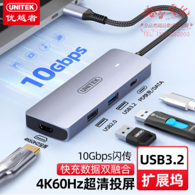 优越者D107B拓展坞Type-C扩展坞10G高速USB3.2分线器hdmi转接头 SKU:yzwhyp802108