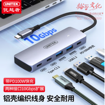 优越者D107A Type-C3.2分线器带PD快充usb3.2Gen2扩展坞雷电3/4高速HUB集线器 SKU:yzwhyp802109