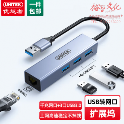 优越者H312B usb转千兆网口网线转接头3.0高速HUB分线器网卡扩展坞 SKU:yzwhyp802135
