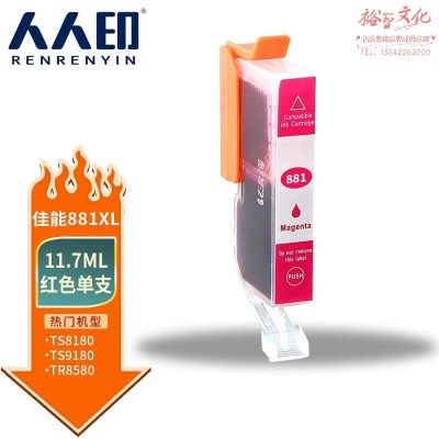 首页 > 办公用品 > 墨水盒 > 人人印 CLI-881XL-M红色墨盒 适用佳能Canon TS5180 TS6180 TS8180 TS9180 TR8580打印机墨盒 墨水 SKU:yzwhyp802198