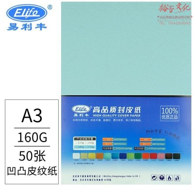易利丰 160g 封面彩色皮纹纸 A3 50张 浅蓝色 单位:包 SKU:yzwhyp802331