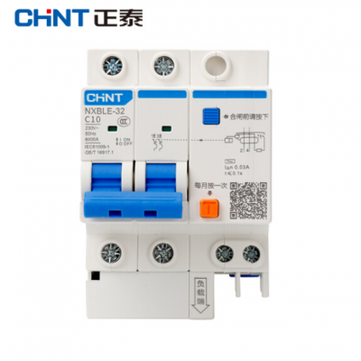 正泰(CHNT)NXBLE-32 2P C10/C16 30mA 6kA 小型漏电保护断路器 漏保空气开关
