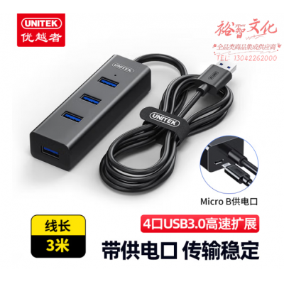 优越者3089LBK usb分线器3米加长线 3.0高速4口扩展坞hub集线器带供电口 SKU:yzwhyp802762