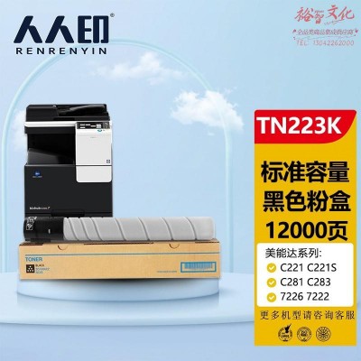 首页 > 办公用品 > 墨粉盒 > 人人印 美能达TN223黑色墨粉盒 柯尼卡美能达TN224 C256 C266 C7222 C7226墨盒 柯美C226碳粉 (标准容量) SKU:yzwhyp802783