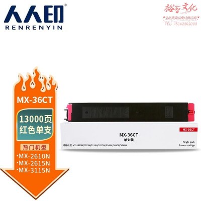 首页 > 办公用品 > 墨粉盒 > 人人印 MX-36CT红色粉盒 适用夏普SHARP MX-2618NC 3118NC 3618NC 2648NC 3148NC 3648NC墨盒 墨粉盒 碳粉 SKU:yzwhyp802841