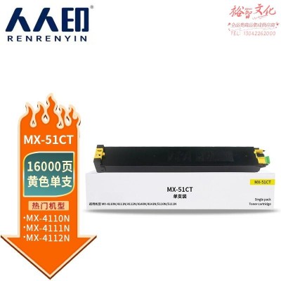 首页 > 办公用品 > 墨粉盒 > 人人印 MX-51CT黄色粉盒 适用夏普SHARP mx-4110n 4111n 4112n 4140n 4141n 4101n 5110n 5111n 5112n墨盒 SKU:yzwhyp802847