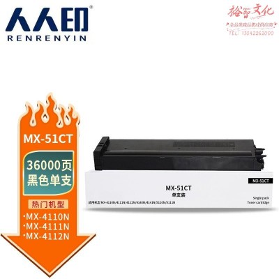 首页 > 办公用品 > 墨粉盒 > 人人印 MX-51CT黑色粉盒 适用夏普SHARP mx-4110n 4111n 4112n 4140n 4141n 4101n 5110n 5111n 5112n墨盒 SKU:yzwhyp802851