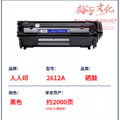 首页 > 办公用品 > 鼓粉盒 > 人人印 2612A硒鼓适用 Canon LBP2900/LBP2900+/LBP3000/L11121E/MF4122硒鼓打印机专用粉盒 SKU:yzwhyp802892