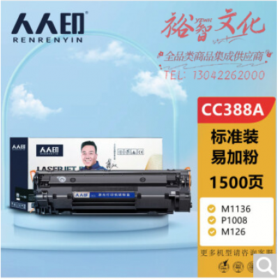 首页 > 办公用品 > 鼓粉盒 > 人人印CC388A 88A标准版硒鼓适用惠普HP设备 388a墨盒P1106 P1108 M126a M1136 M1213nf 1216nfh打印机碳粉盒 SKU:yzwhyp802893