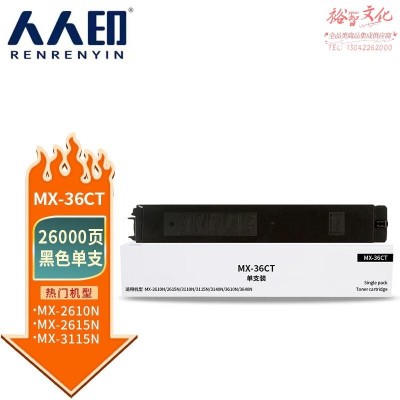 首页 > 办公用品 > 墨粉盒 > 人人印 MX-36CT黑色粉盒 适用夏普SHARP MX-2618NC 3118NC 3618NC 2648NC 3148NC 3648NC墨盒 墨粉盒 碳粉 SKU:yzwhyp802908