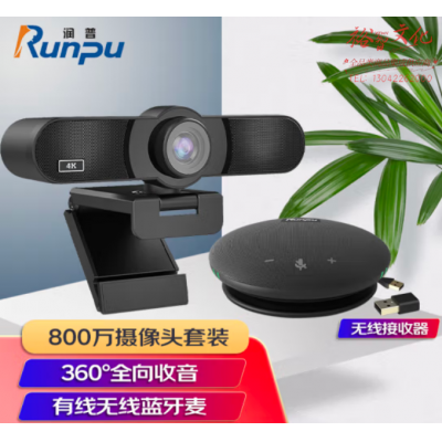 润普Runpu 800万像素会议摄像头套装USB免驱超高清视频蓝牙全向麦克风扬声SKU:yzwhyp803038