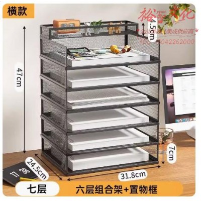 桌面文件架金属资料架文件框多层文件收纳架 A4七层(横黑带侧网六层组合架+置物篮 SKU:yzwhyp803123