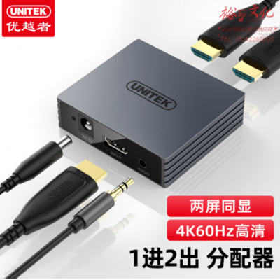优越者V170A HDMI2.0分配器一进二出4K60Hz高清一分二视频分同屏器 SKU:yzwhyp803144