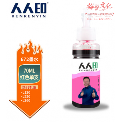 人人印爱普生672打印机墨水70ml红色 SKU:yzwhyp803181