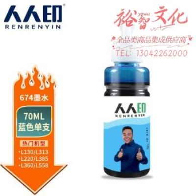 首页 > 办公用品 > 墨水 > 人人印 T674墨水适用爱普生L805 850 1800 810 801 360 101墨仓式打印机 青色 SKU:yzwhyp803192
