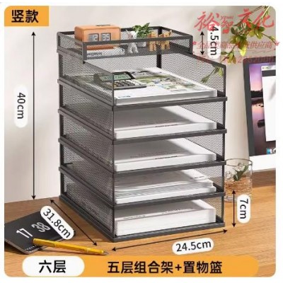 首页 > 办公用品 > 文具 > 桌面文件架金属资料架文件框多层文件收纳架 A4六层 竖黑带侧网五层组合架+置物篮SKU:yzwhyp803201