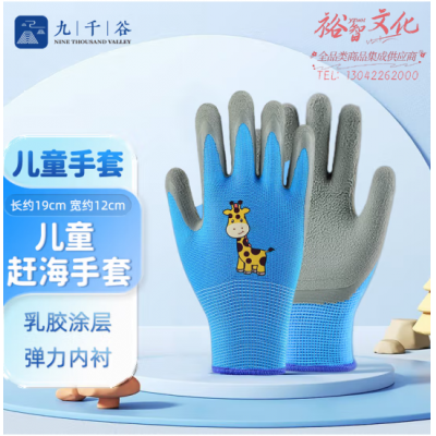 九千谷1557赶海手套儿童 园艺手套防护劳保学生透气手套通用19cm 蓝色 SKU:yzwhyp803326