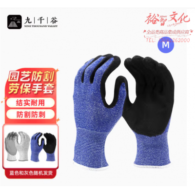 九千谷9912园艺手套 种花园林种植劳保园丁防割防刺耐磨手套蓝色 M码 SKU:yzwhyp803336