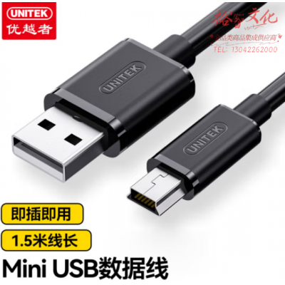 优越者C432EBK Mini USB数据连接线T型口 移动硬盘/行车记录仪线 相机平板mp3/mp4电源线 1.5米 SKU:yzwhyp803364