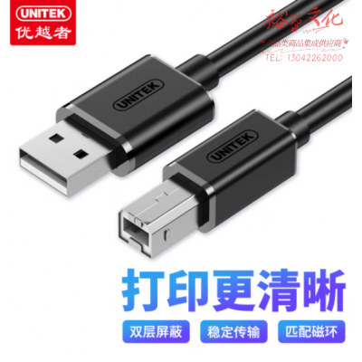 优越者Y-C420EBK USB2.0高速打印机线 AM/BM方口接头数据连接线 3米 SKU:yzwhyp803577