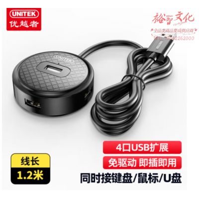 优越者H200BBK USB分线器1米加长线 高速4口HUB集线器扩展坞 一拖四多接口转换器 SKU:yzwhyp803632