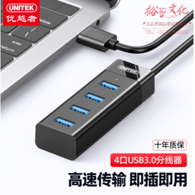 优越者Y-3098ABK USB分线器扩展坞3.0高速HUB集线器 一拖四口usb扩展转换器 SKU:yzwhyp803651