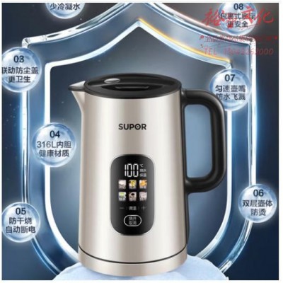 苏泊尔(SUPOR)电水壶双层保温防烫热水壶彩钢外壳大屏显温带防尘盖全钢无缝316L不锈钢电烧水壶家用SW-15S02FQ SKU:yzwhyp804388