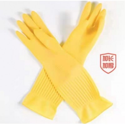 手套厨房女家用洗碗胶皮防水牛筋乳胶工作劳保耐磨 胶皮手套45CM 黄10140
